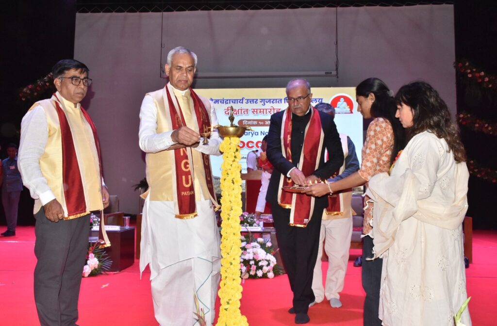 पाटन — राज्यपाल आचार्य देवव्रत की अध्यक्षता में हेमचंद्राचार्य उत्तर गुजरात विश्वविद्यालय, पाटन का दीक्षांत समारोह 2026 अत्यंत भव्यता के साथ संपन्न हुआ। इस अवसर पर राज्यपाल ने कहा कि पाटन शिक्षा, कौशल, शिल्प और कला के लिए देशभर में विशिष्ट स्थान रखता है। सरस्वती नदी के पवित्र तट पर कभी हजारों ऋषि-मुनि तपस्या में लीन रहकर वेद-शास्त्र और आध्यात्मिक ज्ञान का प्रसार करते थे। आज उसी गौरवशाली परंपरा को आगे बढ़ाने वाला यह विद्याकेंद्र गर्व का प्रतीक है।